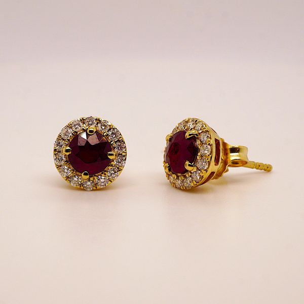 Ruby & Diamond Halo Earrings Sanders Jewelers Gainesville, FL