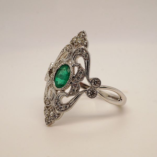 Vintage Style Emerald & Diamond Ring Image 2 Sanders Jewelers Gainesville, FL