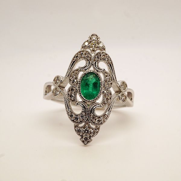 Vintage Style Emerald & Diamond Ring Sanders Jewelers Gainesville, FL
