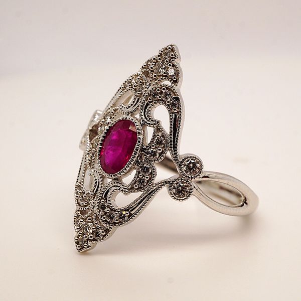 Vintage Style Ruby & Diamond Ring Image 2 Sanders Jewelers Gainesville, FL